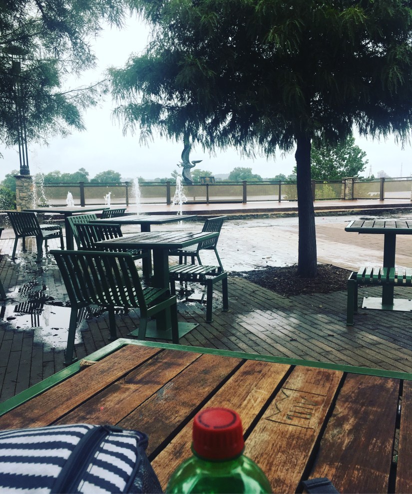2. Go somewhere. If I stay at home inside my house, I’ll be tempted to do things. I had started laundry that morning. It needed doing. The rule is to at least start out somewhere else. Today since it was raining, I went to a covered area by the river.