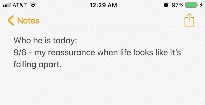 I told God of my disappointments and what I need from Him. That I need to feel His kindness, even in the midst of the broken. That I need Him to be my daddy and fix it. That I’m willing to be patient but I need to know there’s an end to this season.