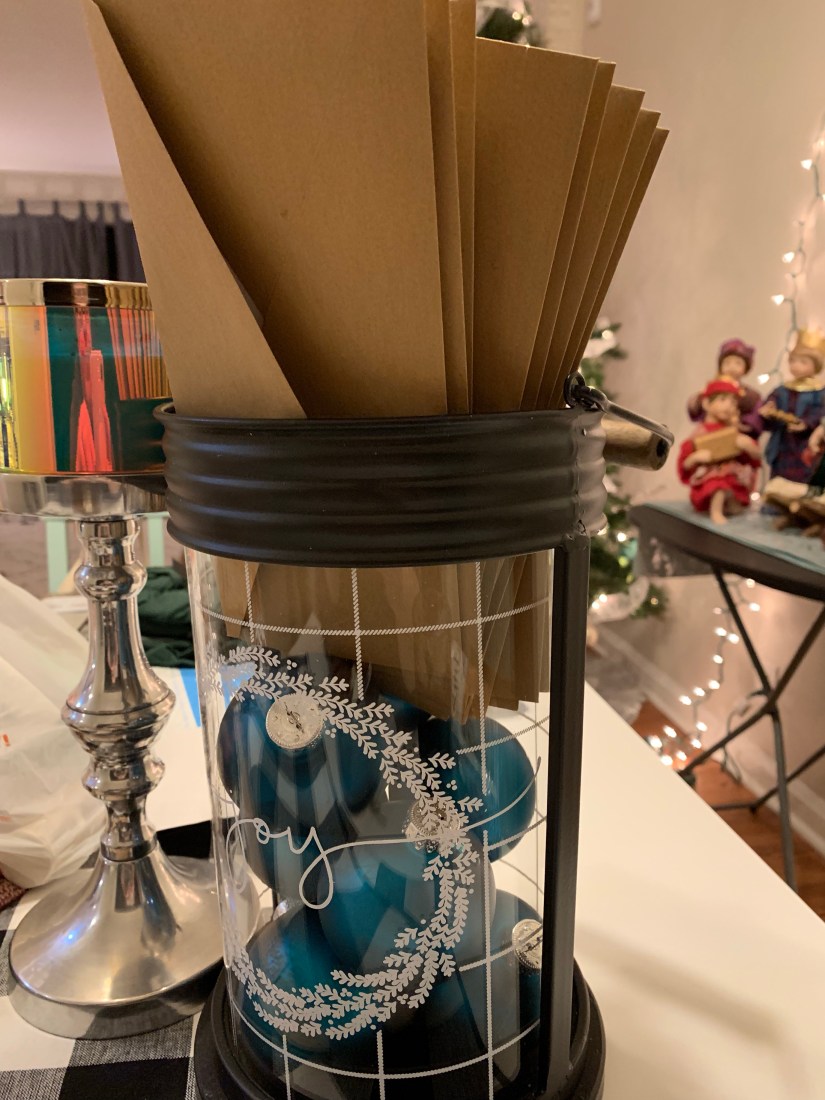Then I put my hopes, wishes, and prayers for them in 2019. Then I signed them and put them in my Christmas centerpiece. (It seemed like a valid container.)