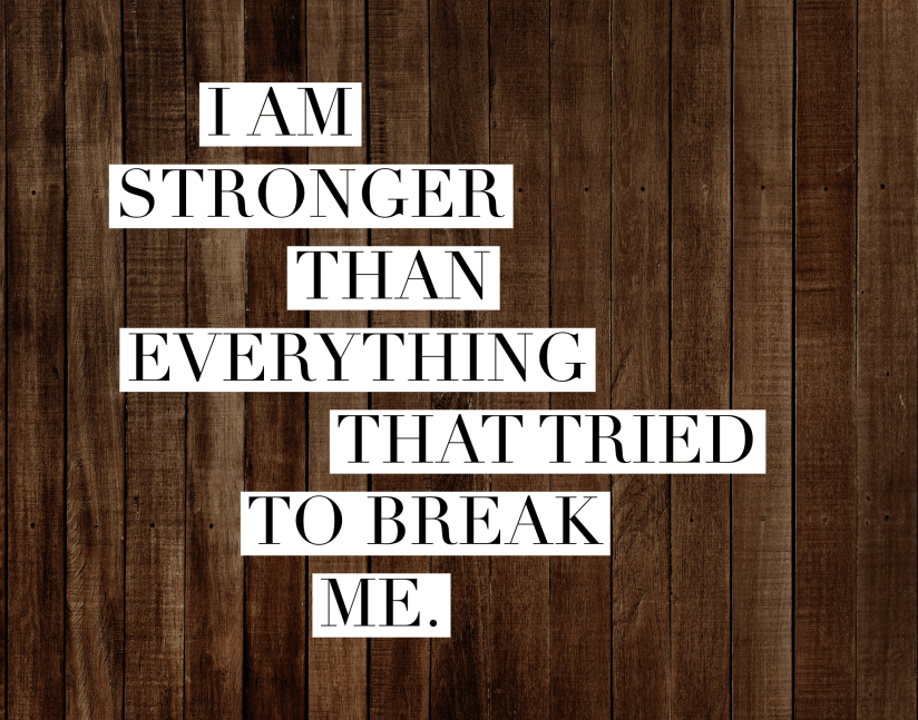 This year I’ve wanted to quit. I’ve wanted to quit a lot of things. I’ve wanted to walk away from my people more times than I could count (as recently as last week). I’ve wanted to walk away from God. I’ve wanted to walk away from life. But I haven’t. I haven’t quit any of the things. So now I resolve to quit living in the past as anything more than an afterthought. It’s a place where I can look back and say, look how far we’ve come. I am stronger than EVERYTHING that tried to break me.