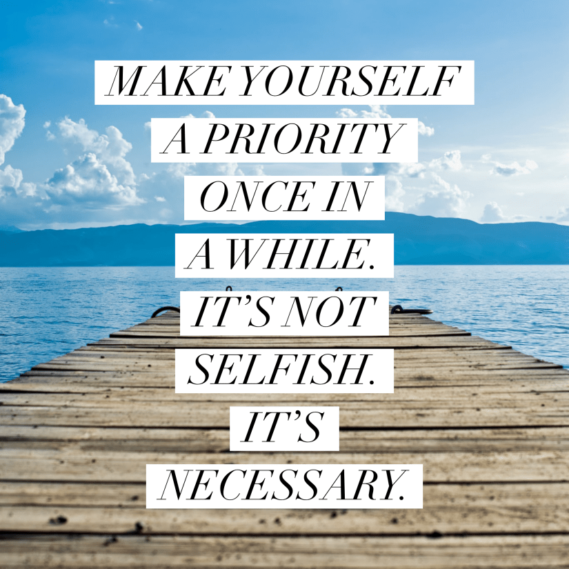 I’m learning through my people, through therapy, through time and the school of hard knocks that I need to prioritize myself sometimes.