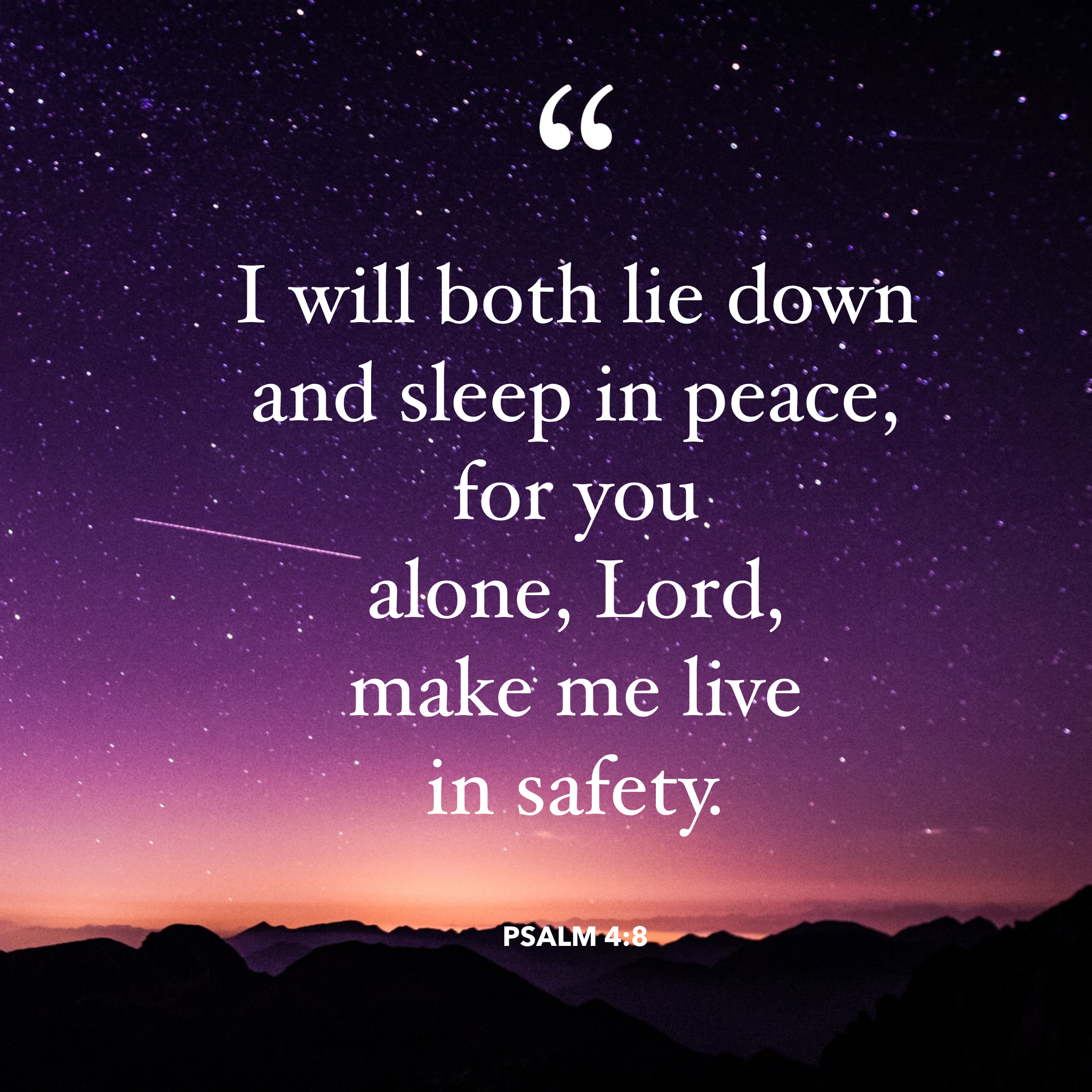 “I will both lie down and sleep in peace, for you alone, Lord, make me live in safety.” Psalm 4:8