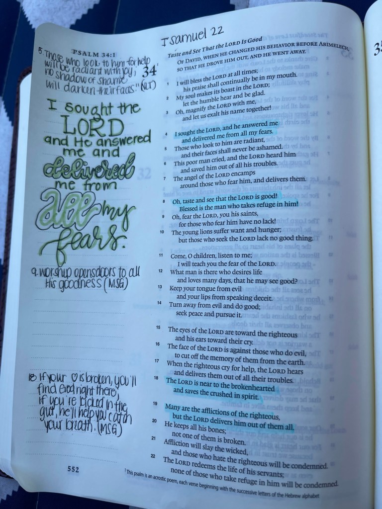 As I started reading it, I was reminded of how much I have always identified with that Psalm. Yet, I never really paid attention to what was happening when it was written. Anxious about being killed possibly by a king, pretending to be crazy to get away. Ok.