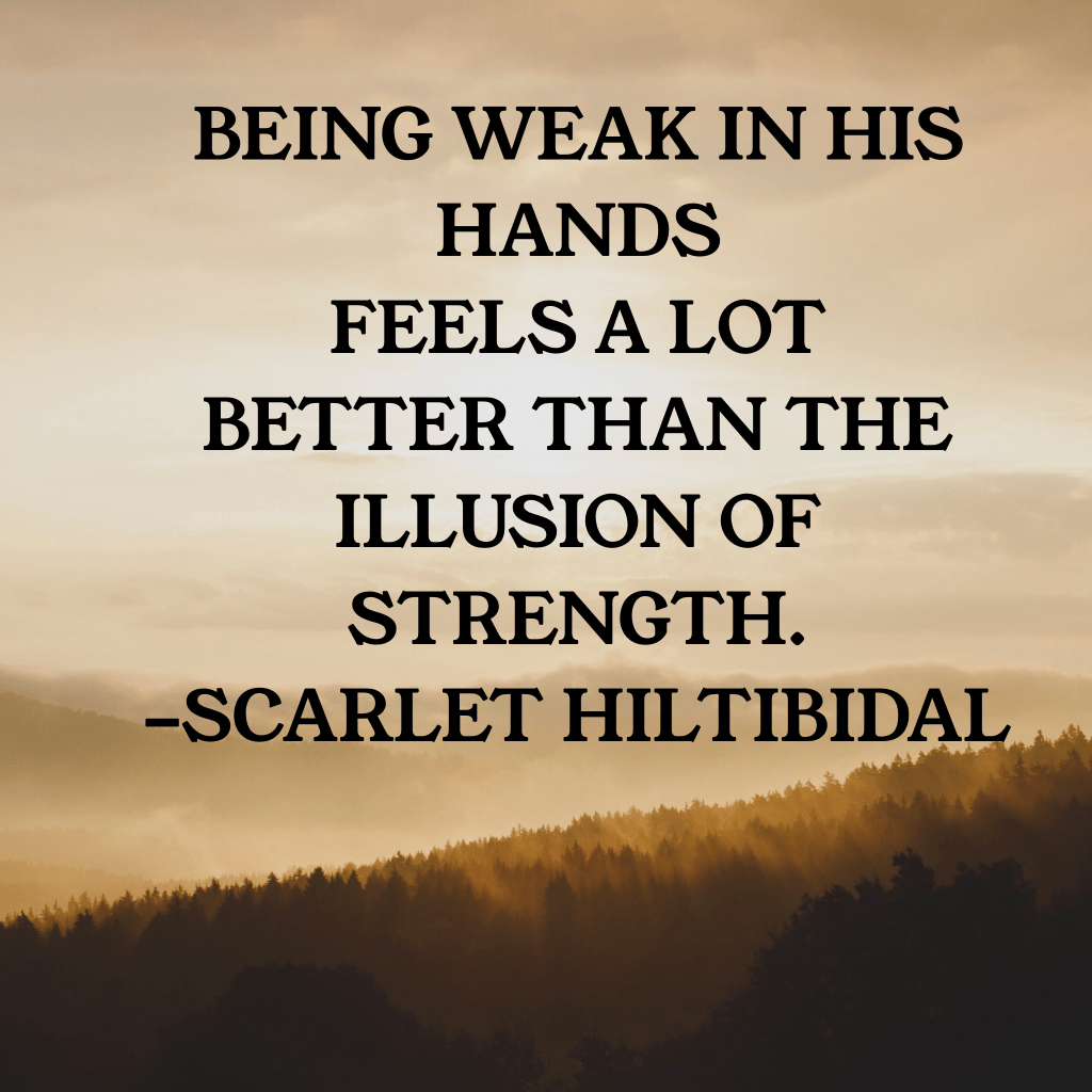 But none of us really are. I cling to that illusion of strength with both hands, white knuckled sometimes. I don’t want people to see me cry. I don’t want to be dependent on another person. All the things.